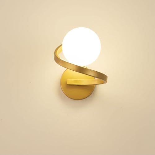 KAWELL Lighting Bracket Light, Wall-Mounted, Indirect, with Milky White Glass Ball Shade, G9 Base, Bedside Lamp, Bedroom, 3-Color Bulb Included (Gold,