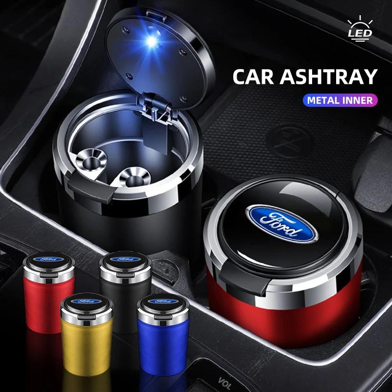 Hot Car Ashtray with Lid Smell Proof Stainless Steel Blue Led Portable Ashtray Cup For Ford Mk2 Mk3 Mk4 Mk5 Mk7 Fiesta FOCUS 2 3
