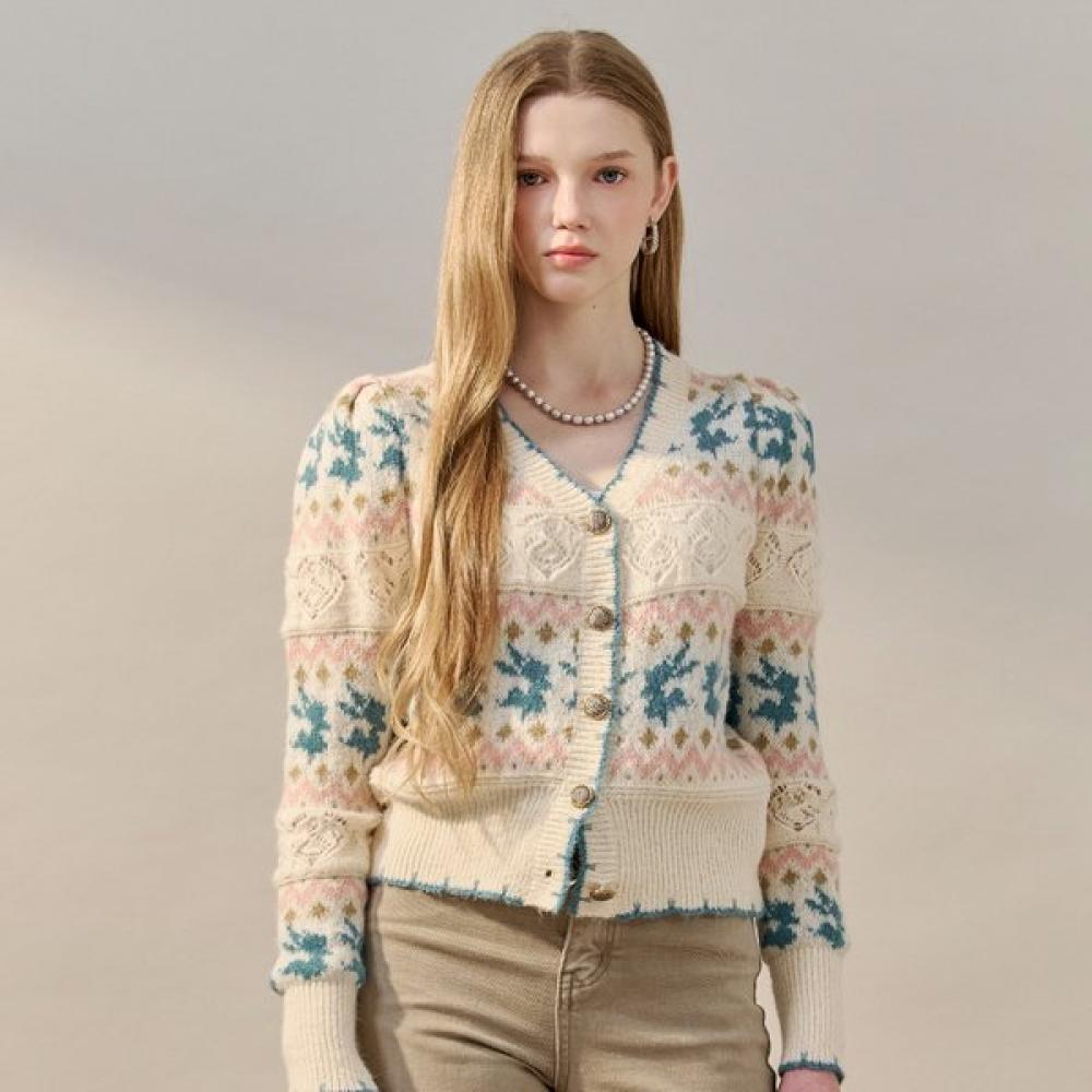 Maxza Fair Isle Jacquard V Neck Knit Cardigan Zf02qd001na