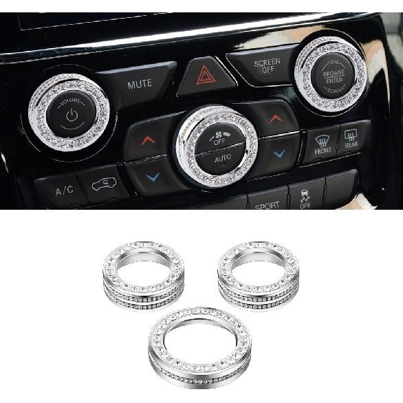 PIFOOG for Jeep Grand Cherokee Accessories & Cherokee Accessories 2014-2021, Crystal Bling Car AC Knob Covers for Jeep Interior Trim Kit 3PCS Women