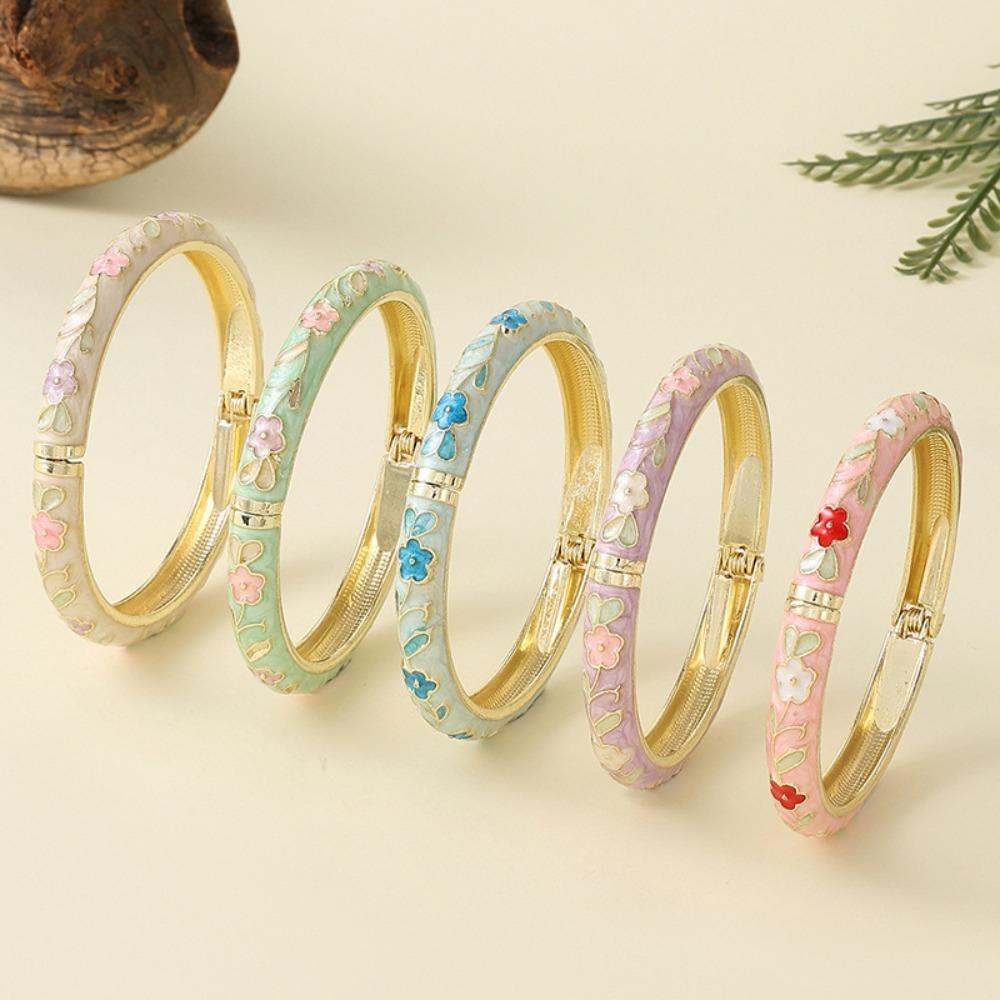 Flower Pattern Blossom Enamel Bracelet Rustic Style Women Bangle Vintage Bracelet Student
