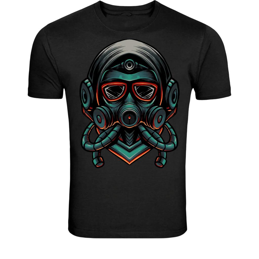 Futuristic Gas Mask Cyberpunk T-Shirt - Sci-Fi Tech Graphic Tee