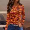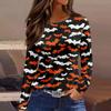 Damenmode Saumschlitz Lässig Halloween-Print Rundhals Langarm Oberteil