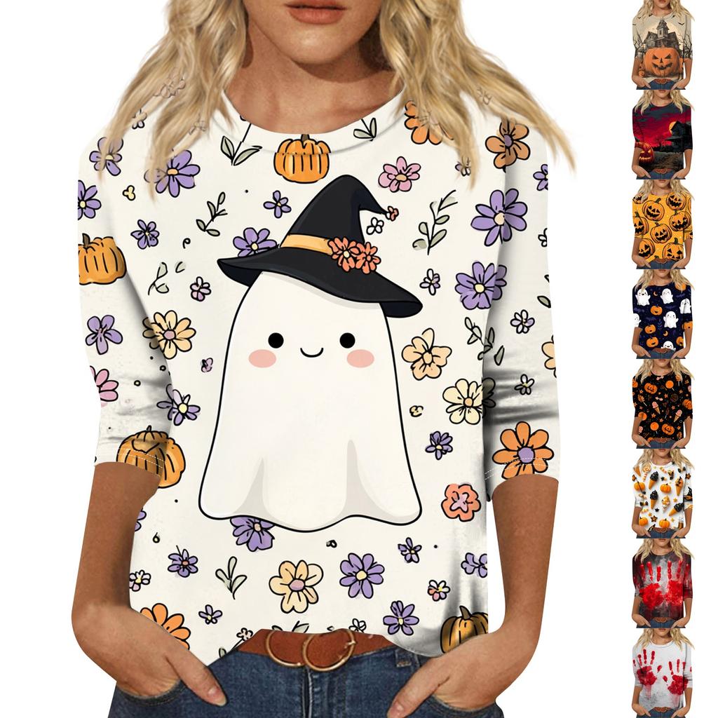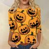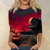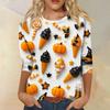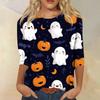 Damenmode Lässig Rundhals Dreiviertelarm Halloween Bedrucktes T-Shirt Top