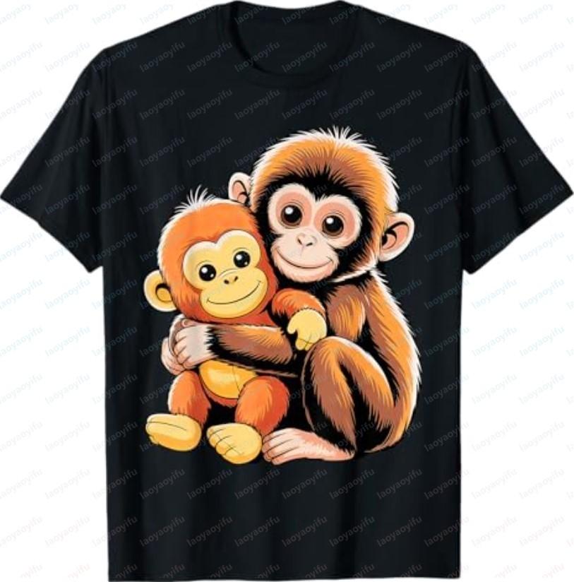 Punch Baby Monkey Tshirt Black Shortsleeved Roundneck Stylish and Casual Funpatterned Top
