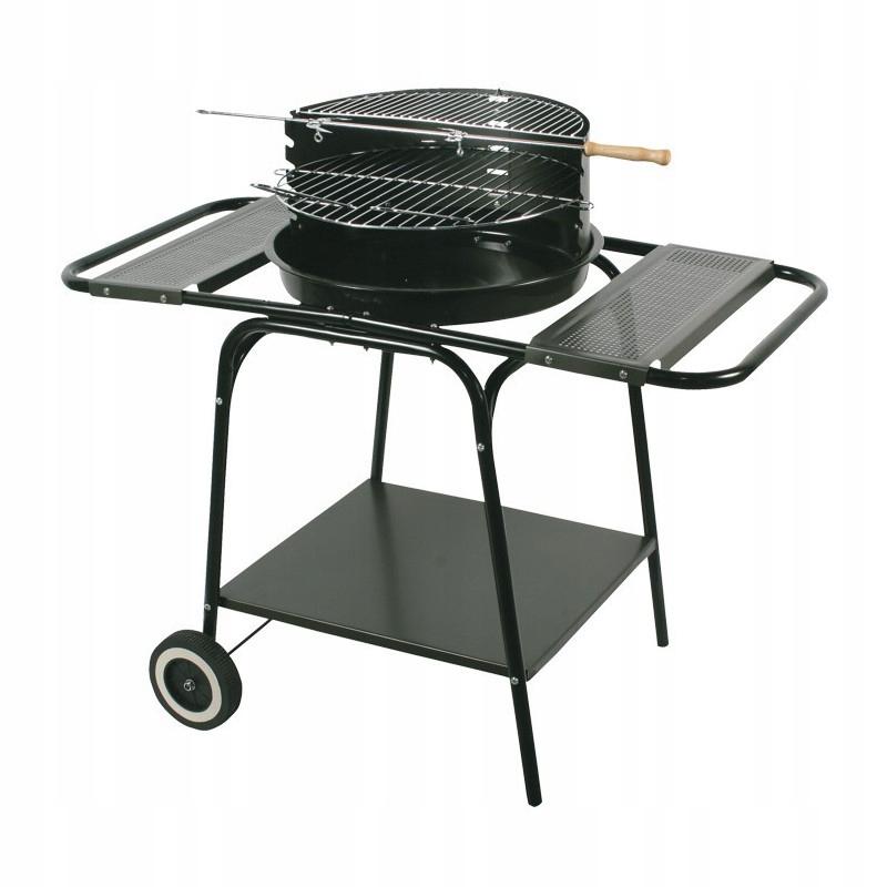 Garden charcoal grill with shelves and wheels