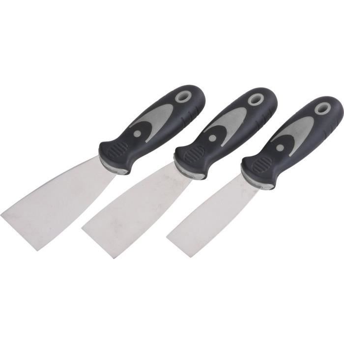 Jeu de spatules - KWB - 029890 - Acier inox - Manche en plastique - Pour détapisser et mastiquer