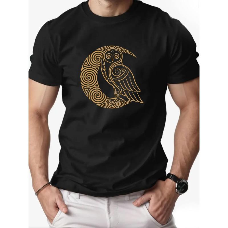 European Size Men'S Owl Pattern Summer Casual Short-Sleeve T-Shirt