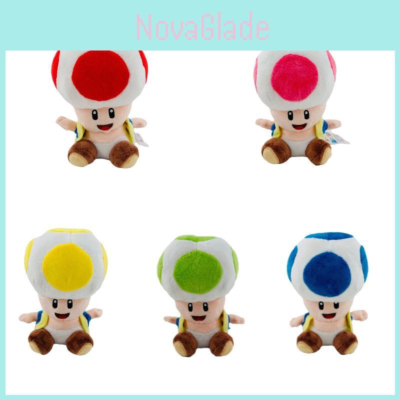 Super Mario 17cm Toad Plüschtier Mit 5 Bunten Sitzenden Pilzfiguren