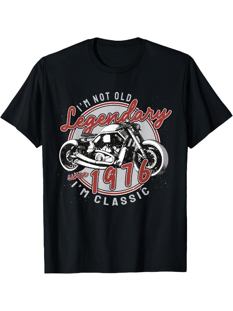 1976 45. Jubiläum Vintage Motorrad 45 Jahre Biker Retro Design 100% Baumwolle Rundhals Kurzarm Bedruckt Herren T-Shirt