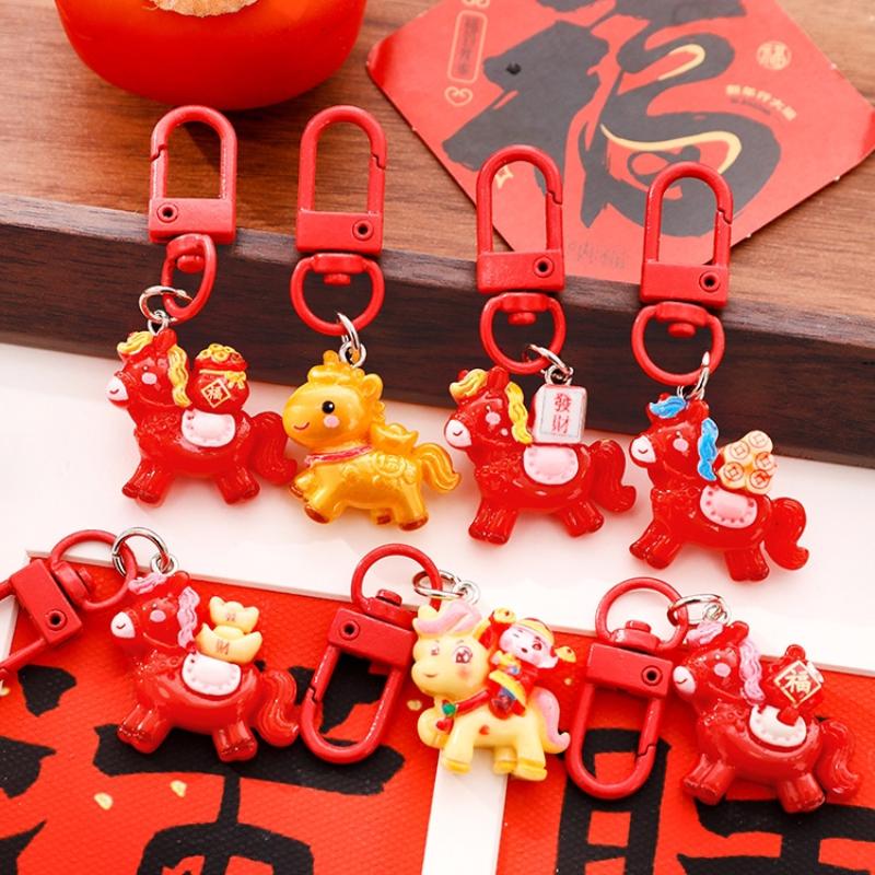 1/7 Stück Cartoon Pony Schlüsselanhänger Niedliches Rotes Harzpferd Rucksack Anhänger Dekoration Auto Schlüsselanhänger Zubehör Jahr des Pferdes Geschenk