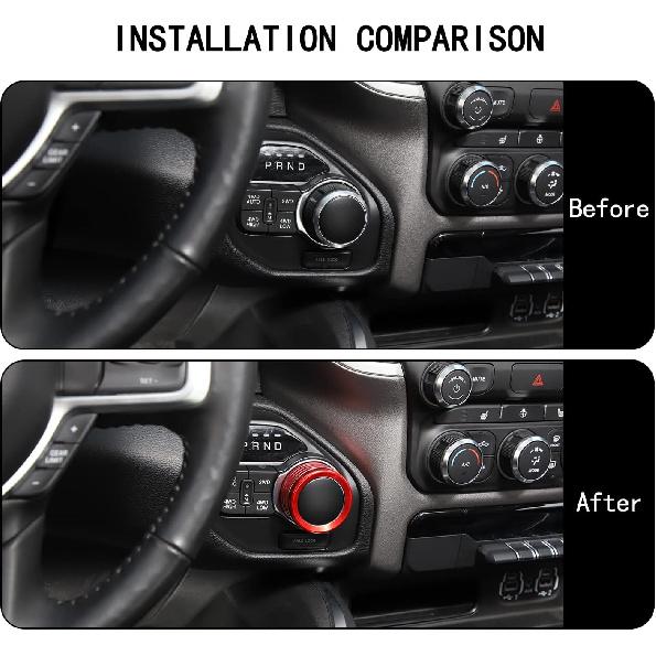 Voodonala for Dodge RAM Aluminum Headlight Headlamp & Gear Shift Shifter Shift Lever Selector Knob Switch Adjustment Knob Cover for 2018-2026 Dodge