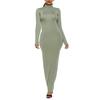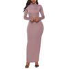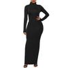 Lässiges Damen einfarbiges langärmeliges Rollkragen dehnbares figurbetontes langes Kleid