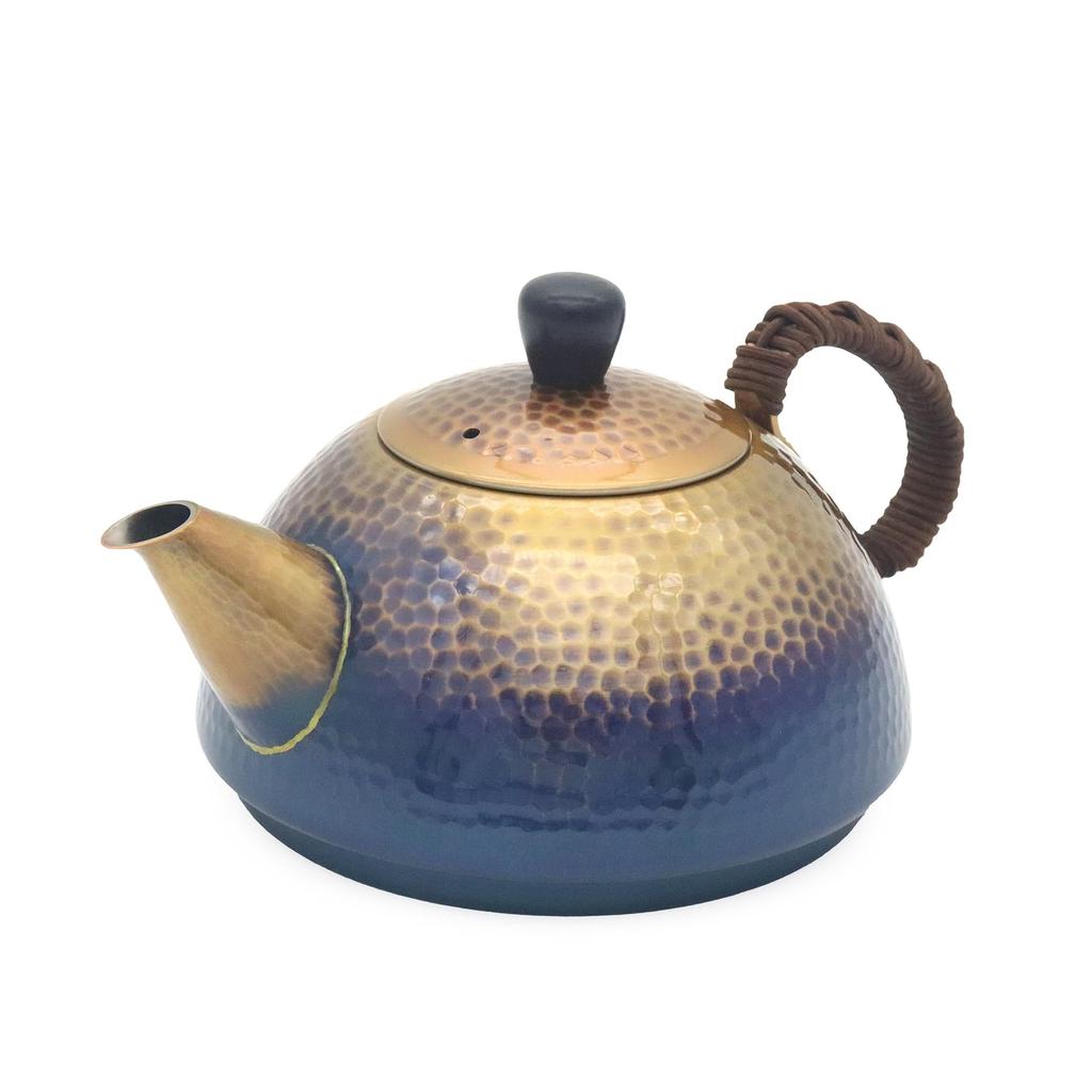 Shinkodo Teekanne aus reinem Kupfer von Wang Hergestellt in mit Geschenkverpackung (Halbe Runde) Hui, Japan, Gehämmert,