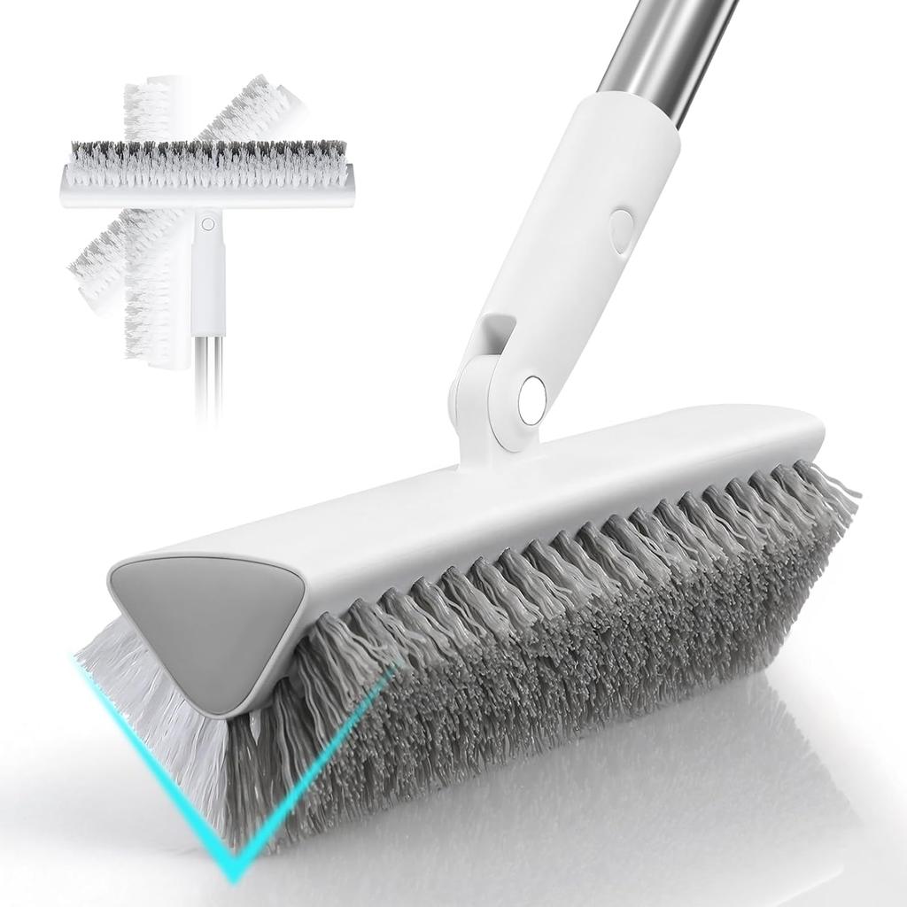 MOPALL Floor Scrub Brush With Long Handle 55", Dual-Sided Stiff Bristle Grout Brush With 180° Rotatable V-Shape Head, Heavy Duty Shower Cleaning