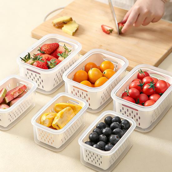 4-In-1 Fruit Vegetable Storage Container with Removable Filter Leak-Proof Airtight PP Storage Box for Washing Draining Stackable Food Organizer