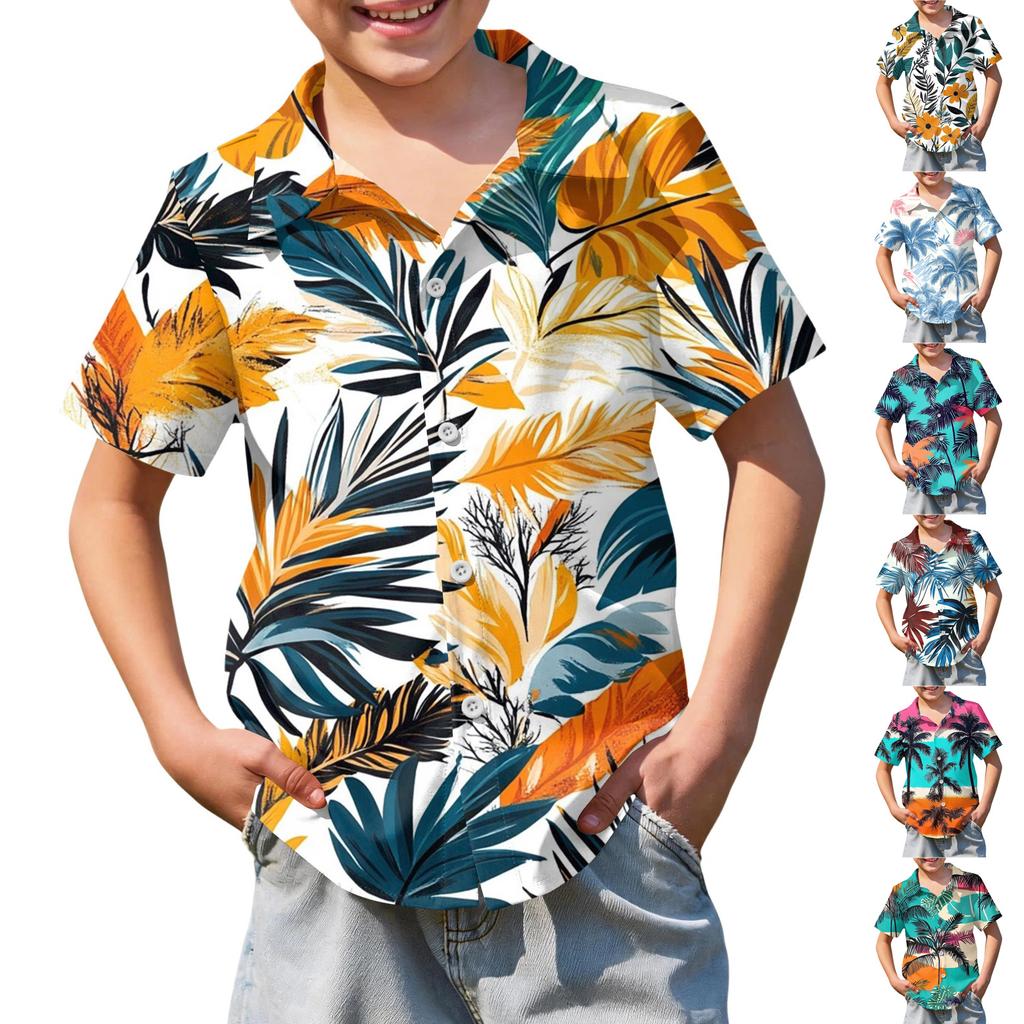 Jungen kurzärmeliges Hawaiihemd, Kinder Sommer Hemd mit Knöpfen