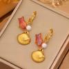 Stainless Steel Earrings with Ocean-themed Pearl Pendants. Sea Star and Dolphin Shell Titanium Steel Earrings for Decoration.