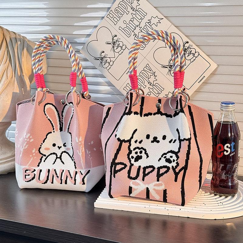 Cute Cartoon Knitted Bucket Bag For Women Girls Versatile Large Capacity Portable Handbag Tote Small Square Bag Gift