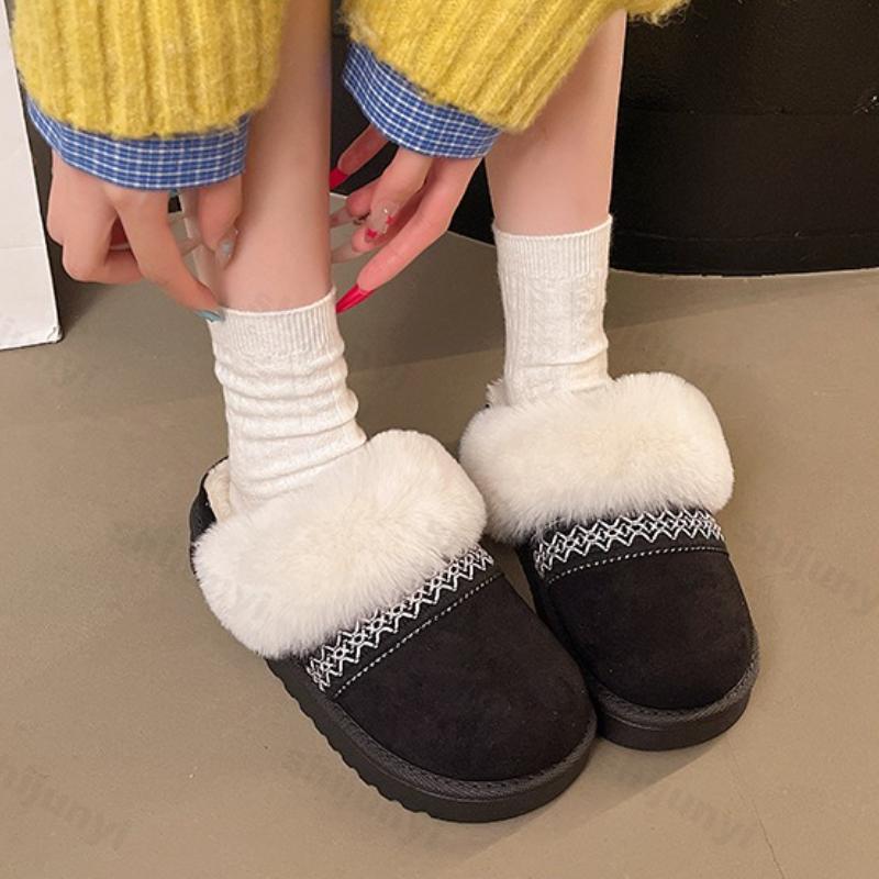 Women's Cotton Slippers 2026 Winter New Slip on Casual Outdoor Non Slip Warm Shoes Thicken Plush Comfortable Indoor Home Shoes