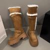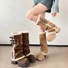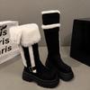 Winter Warm Short Plush Women Knee-High Snow Boots Belt Buckle Fur Lined Chunky Platform Shoes for Women Comfortable Long Boots