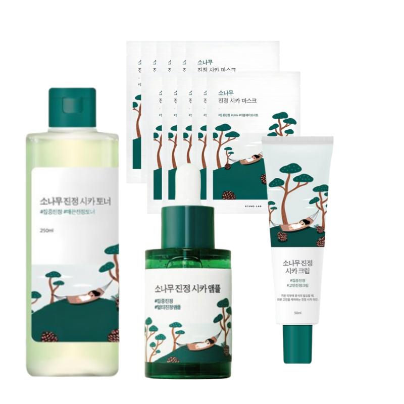ROUND LAB Pine Cica Beruhigendes Hautpflege-Set (Toner 250ml + Ampulle 30ml + Creme 50ml)