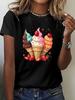 Women's T-shirt color ice cream cone strawberry print T-shirt casual round neck short sleeved top