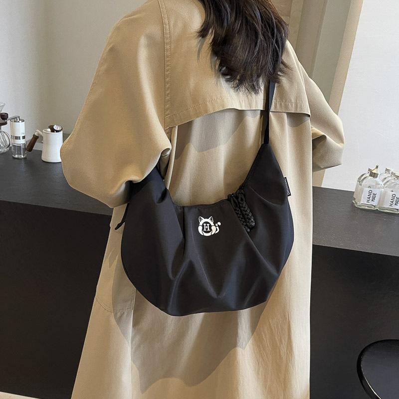 Large capacity canvas bag women's autumn and winter fashion niche design shoulder messenger bag commuter dumpling bag