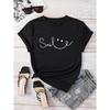 T-Shirt mit Buchstabenaufdruck und Rundhalsausschnitt, lässiges Kurzarm-Oberteil für Frühling & Sommer, Damenbekleidung