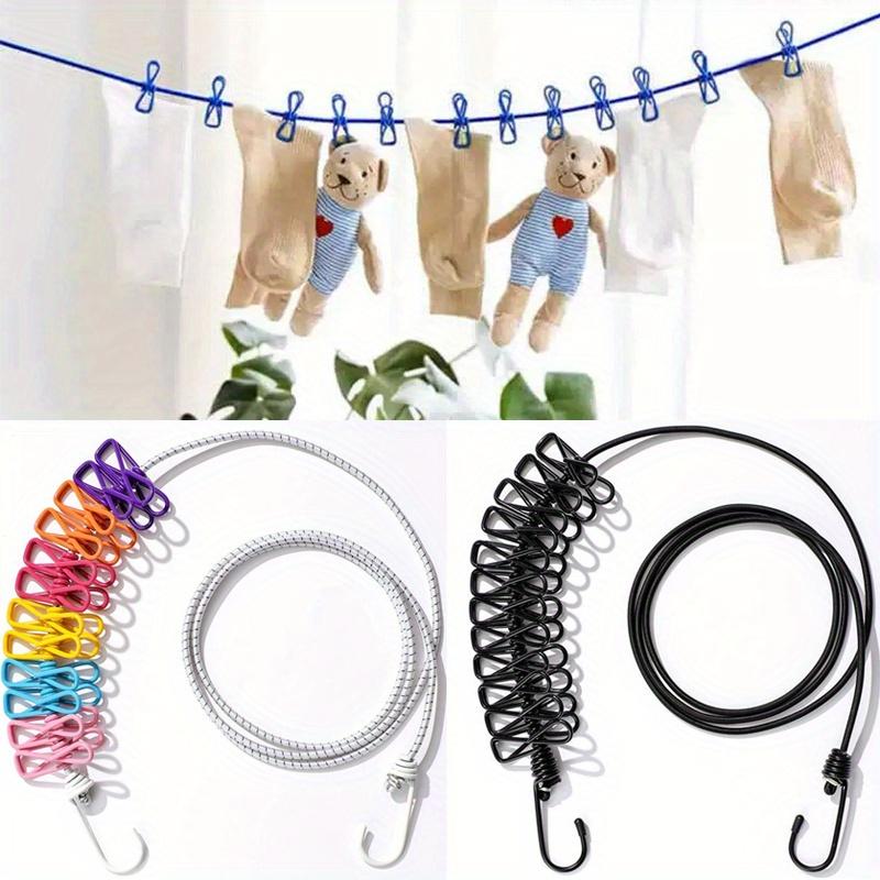 Reise-Wäscheleine mit 12 Klammern, Tragbares Wäscheleinen-Werkzeug, Winddicht für Balkon im Freien, Wäscheleine für den Innenbereich ohne Bohren