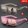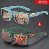KAROS 2PCS Retro Square Sports Sun Glasses Lightweight UV400 for Fishing and Driving Unisex Vintage Outdoor Eyewear