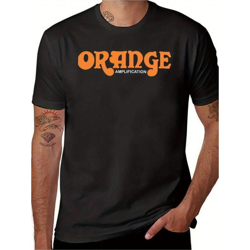Herren Orange Amplification Grafik Oversize T-Shirt Schwarz Entspannte Passform Rundhalsausschnitt Kurzarm T-Shirt Maschinenwaschbar Lässiger Sportlicher Stil Atmungsaktiv