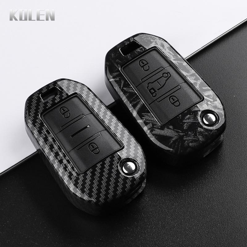 ABS Carbon Fiber Style Car Key Case Cover For Peugeot 208 308 T9 508 2008 3008 4008 For Citroen C4 For Opel Corsa Crossland X