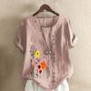 Women's Fashion Loose Cotton And Linen Short Sleeve Printed Temperament Crewneck Top