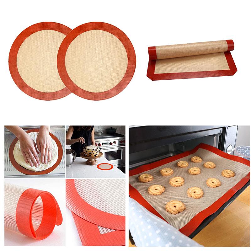 Wiederverwendbare Silikon-Backmatte Antihaft Hitzebeständig Runde und Rechteckige Gebäckmatten zum Kneten Ausrollen und Backen von Keksen