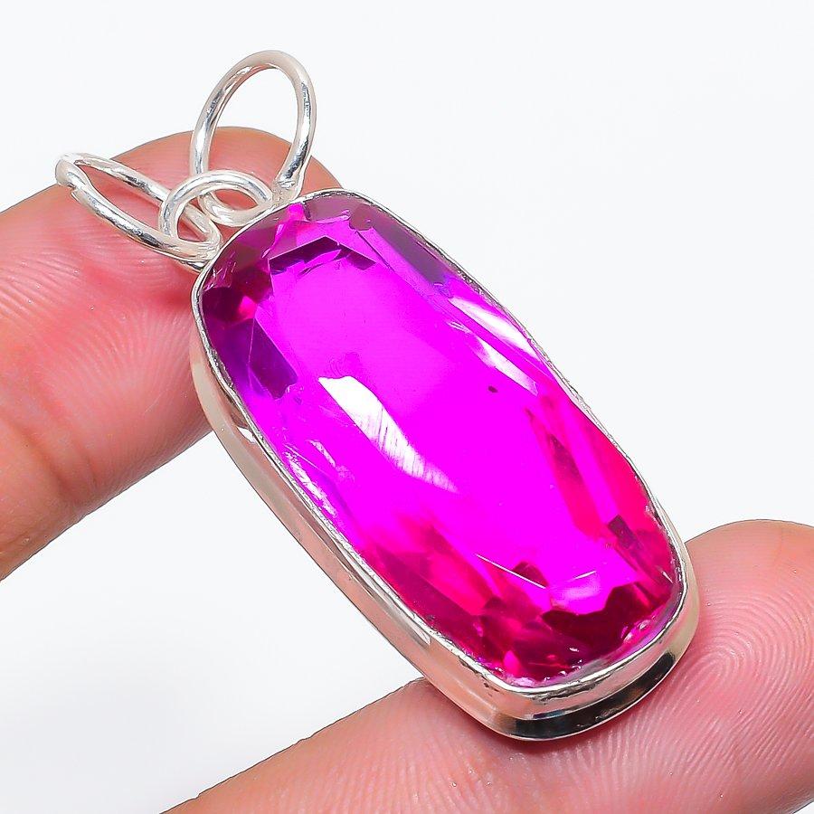 Natural Pink Rubillite Gemstone 925 Sterling Silver Jewelry Pendant 2.01" AP-14108