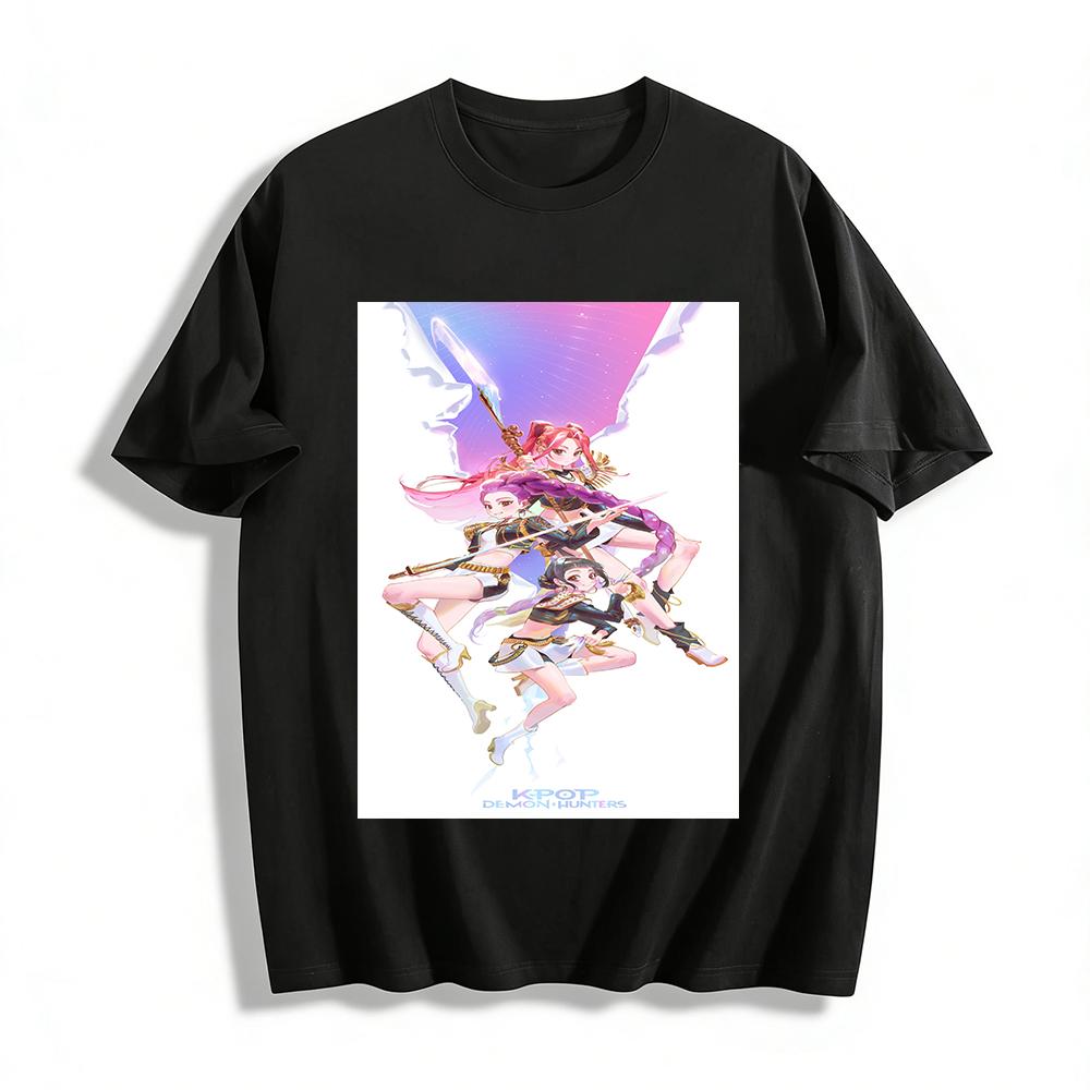 KPOP Dämonenjäger Anime Mädchen Print T-Shirt Lässiges lockeres Oberteil Für Männer Frauen Reines Baumwoll-T-Shirt