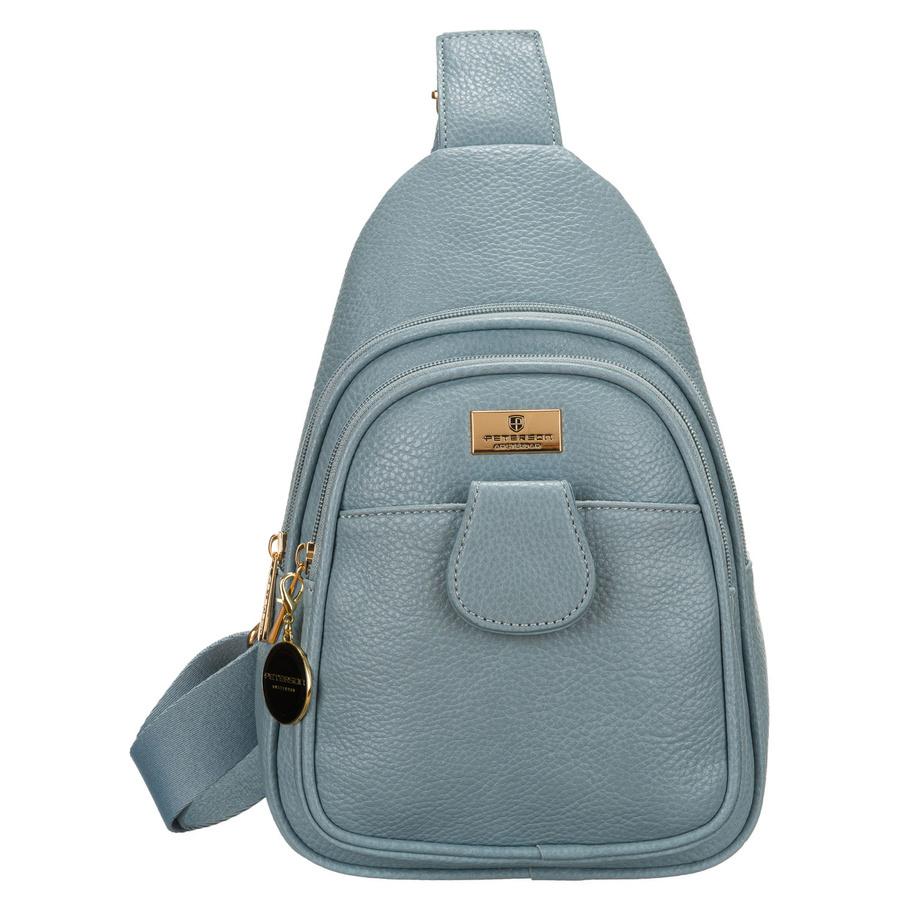 Blaue stilvolle kleine Damen-Tasche aus Öko-Leder, verziert mit goldenen Beschlägen, Bauchtasche Crossbody Peterson