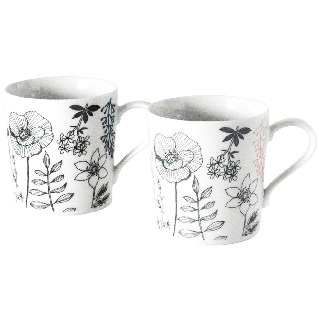 Aito Seisakusho Tassenset 2 Stück 340ml Mikrowellen- und spülmaschinenfest Leichtes Geschirr Mino-Keramik Hergestellt in Japan 113522 „Blumenmuster“ (Paar) Ca.