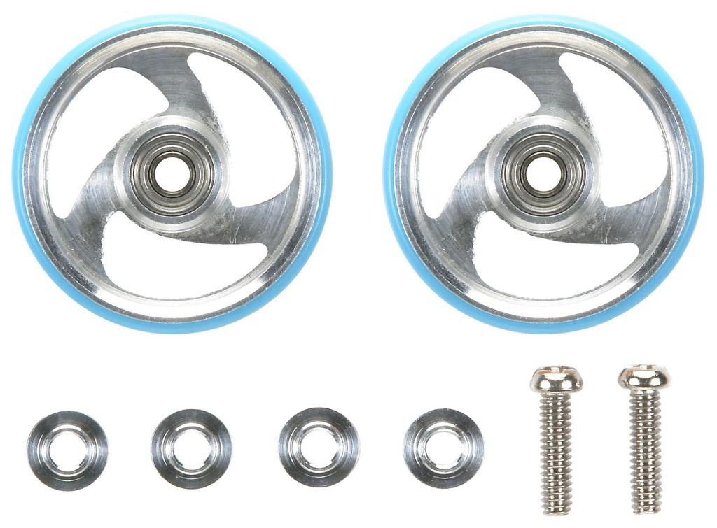 Tamiya Mini 4WD Special Edition 19mm Aluminum Bearing Rollers with Plastic Light 95327 Item Rings, Blue,