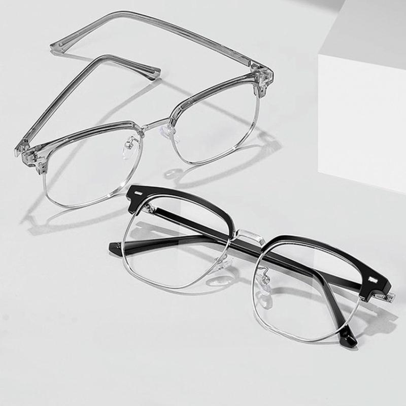 New Fashion Unisex Square Myopia Glasses for Men Women Metal Half Frame Eyeglasses Anti Blue Light Glasses 0 To -6.0