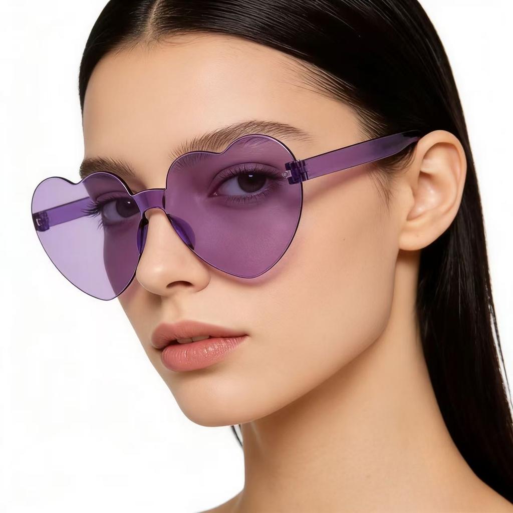 1pc Rimless Heart Sunglasses for Women 2026 New Transparent Pink Purple Love Heart Shades Party Eyewear