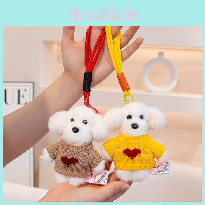 Teddy Hund Plüsch Schlüsselanhänger mit Pullover Niedliches Cartoon Tier Spielzeug für Mädchen und Kinder