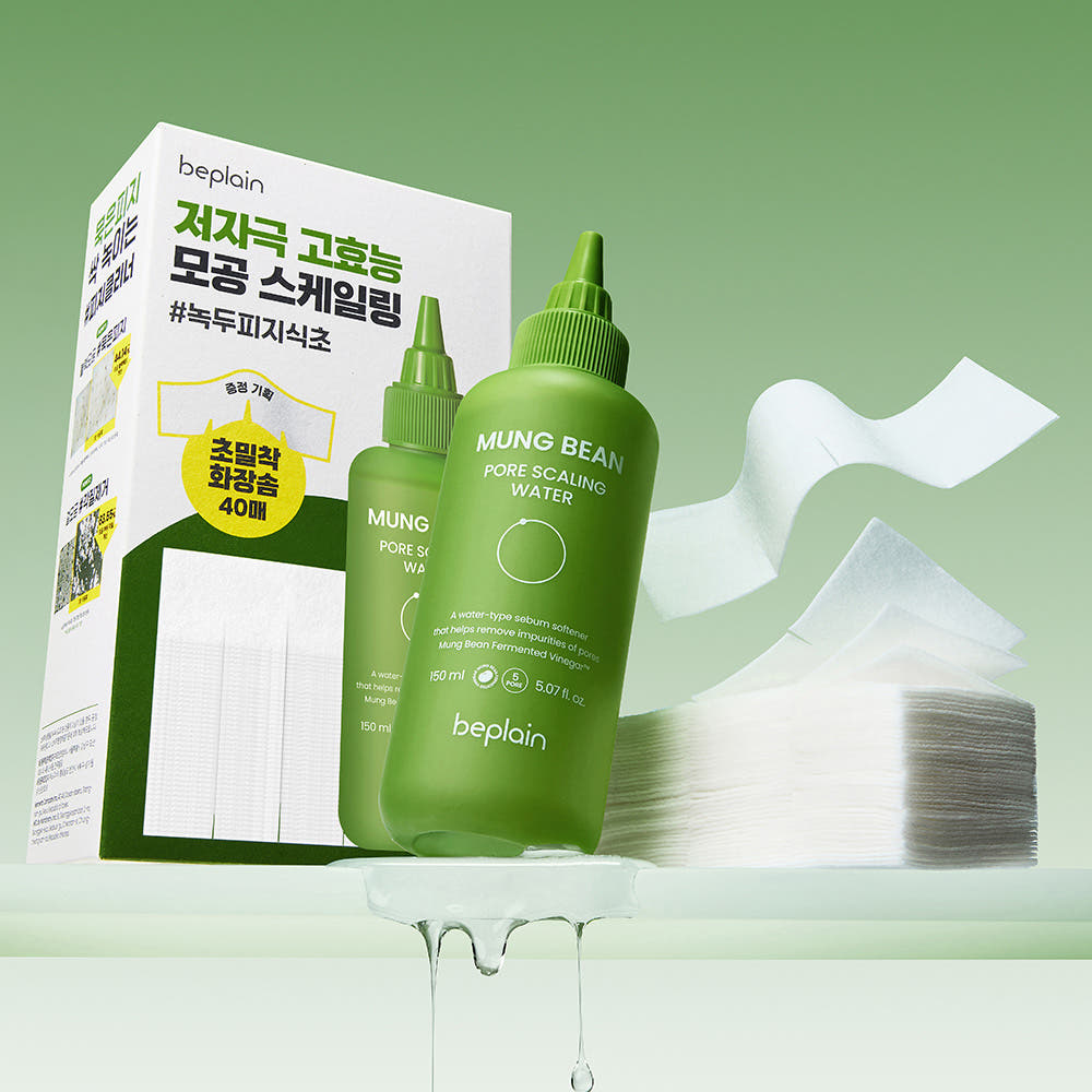 BEPLAIN Mung Bean Pore Scaling Water Sebum Remover Set(Exfoliating Toner 150ml+Cotton Pads 40sheets+skin scaler+skin softener skin cleaner)