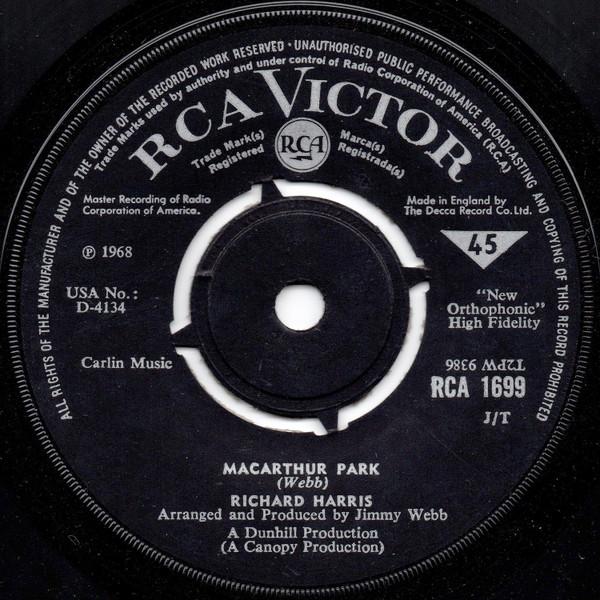 7inch Record RICHARD HARRIS MacArthur Park RCA1699 RCA Victor 1968 UK Pop Used