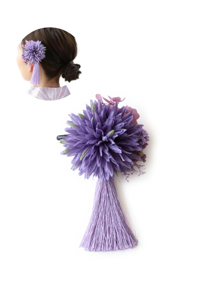[Noelmarket] Hair Ornament for Yukata, Handmade in Japan, Preserved Flower, Baby's Breath, Dahlia-style Flower, Tassel, for Coming-of-Age Ceremony,