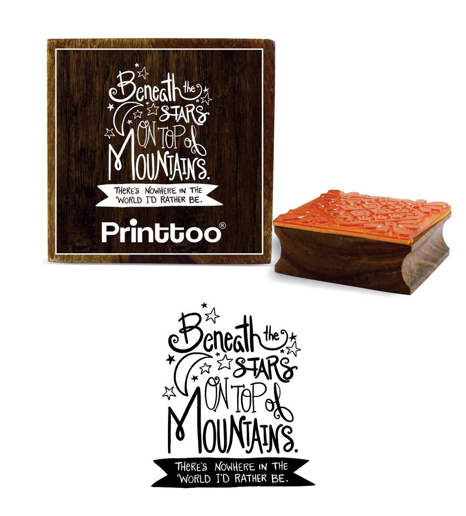 Printtoo Beneath The Stars On Top Of Mountains Design Square Wooden Rubber Stamp-2 X 2