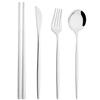 4Pcs Mirror Stainless Steel Tableware Gold Portable Dinnerware Knife Fork Spoon 304 Chopsticks Cutlery Set Western Flatware Set