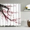 Japanese Style Cherry Blossoms Red Rose Shower Curtains Bathroom Curtain Frabic Waterproof Polyester Bathroom Curtain with Hooks