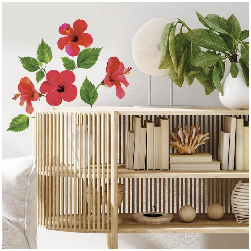Les Trésors De Lily [R4067] - Sheet of Stickers 'Hibiscus' Red Green - 20x70 Cm
